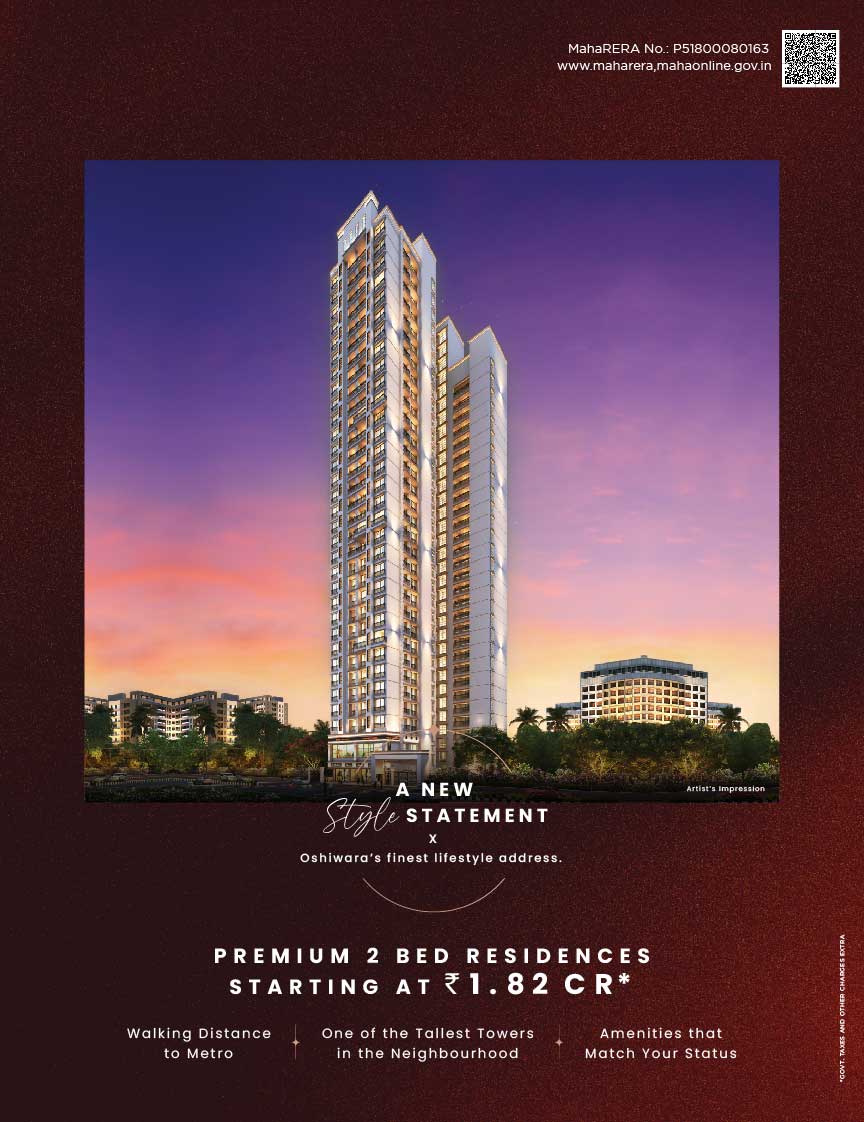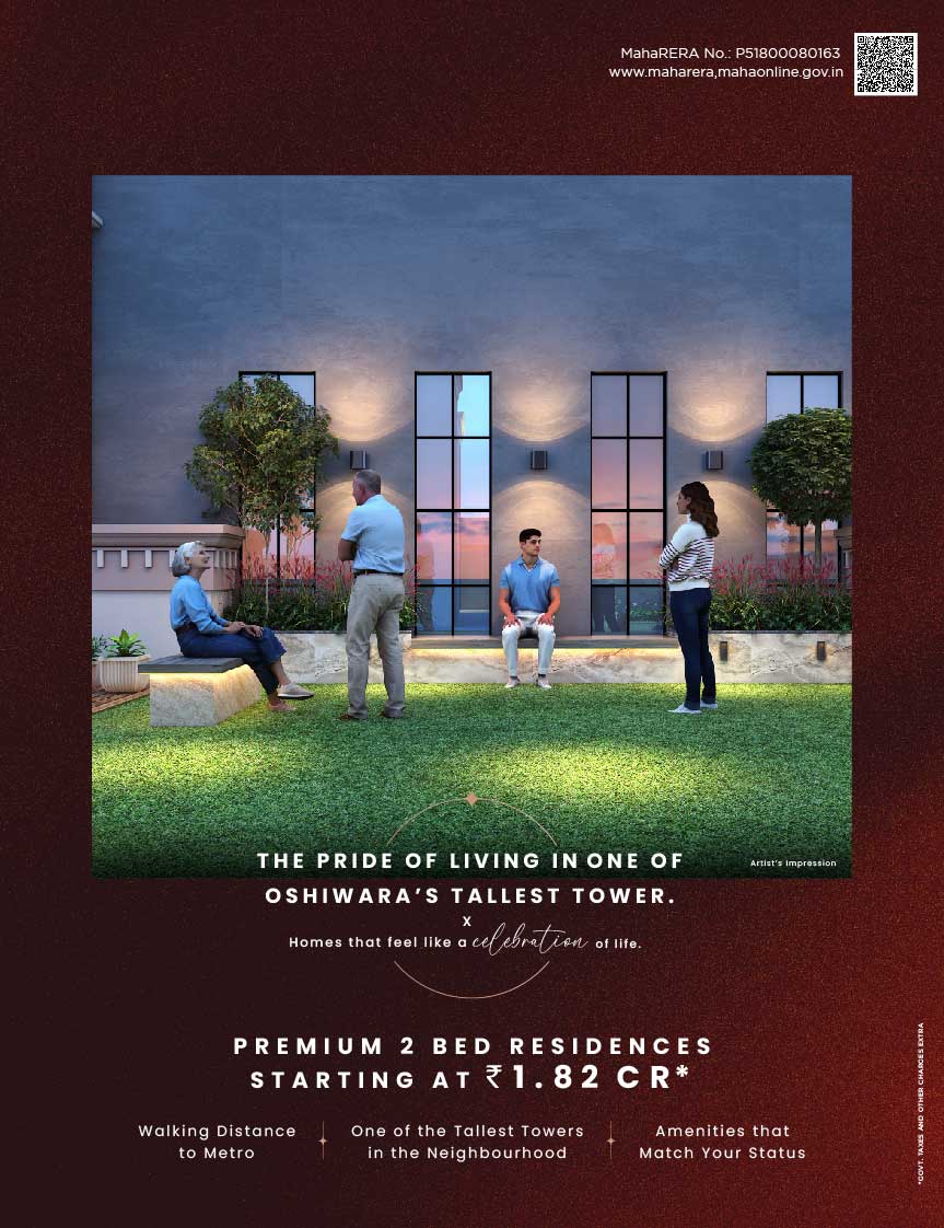 Oshiwara isn’t just well-placed, it’s perfectly positioned. Nestled between Andheri West, Lokhandwala, and Goregaon, it connects effortlessly to the city’s key destinations via Link Road, SV Road, and the Western Express Highway. With seamless access to metro lines, rail stations, and arterial roads, it’s a locale that moves with the pulse of Mumbai.